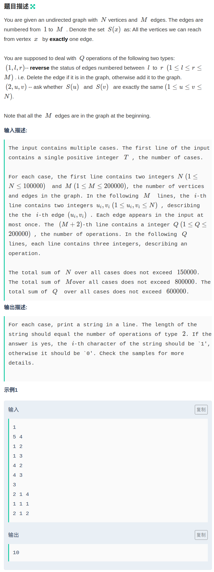 There are multiple test cases. The first line of input contains an integer T(T≤10), indicating the number of test cases.